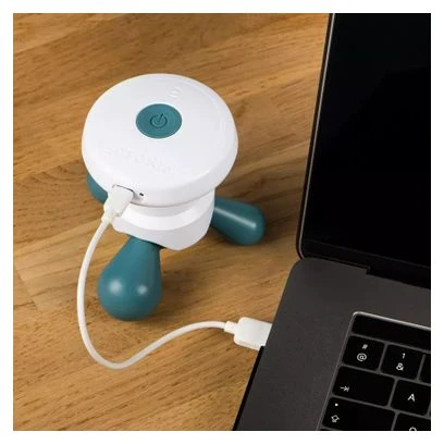 Diseñado para el automasaje después de hacer deporte. Permite un masaje de presión con la mano y gracias a vibraciones. ¡Relaja tus músculos con masajes! El masaje manual se utiliza en muchas zonas del cuerpo: piernas, brazos, pectorales, cuello … El masaje manual se refuerza con vibraciones. Los + productos: Versatilidad: Perfectamente adecuado para piernas, brazos, pectorales, cuello. Facilidad de uso: te permite darte un masaje. Mano electrónica vibrante. Recargable: Sin pilas, USB recargable Fácil de transportar: Su reducido tamaño permite llevarlo a todas partes. Ecodiseño : -35% CO2 frente a la versión anterior: menos material y sin necesidad de pilas. Detalles: Tiempo mínimo de funcionamiento: 1 hora. Tiempo de carga: 1h30 Frecuencia de vibración: 75 Hz (+/- 5 Hz) Entrada USB: 5 V CC 0,6 A Batería recargable de iones de litio: 750 mAh 3,7 V // 2,7 Wh