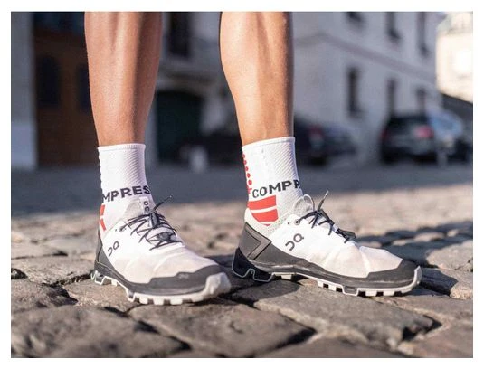 Calcetín multideporte blanco orientado al rendimiento con cojines y almohadillas acolchadas para proteger el pie de los impactos.