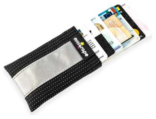 El tarjetero » Portaschei » es el monedero diseñado para ciclistas por Miss Grape. Puedes llevar todo lo que necesitas en muy poco espacio. Diseñado para personas que no quieren llevar carteras grandes y aburridas. Simplemente tire de la pestaña para sacar sus tarjetas, es así de simple. Idealmente, puede llevar hasta 6 tarjetas y varios billetes. Gracias a la cinta reflectante, puedes encontrarlo incluso si lo dejas caer en medio de la noche. Detalles: Hecho a mano en Italia. Capacidad: hasta 6 tarjetas. También puede traer billetes. Dimensiones: 9x6x1 cm Cinta reflectiva.