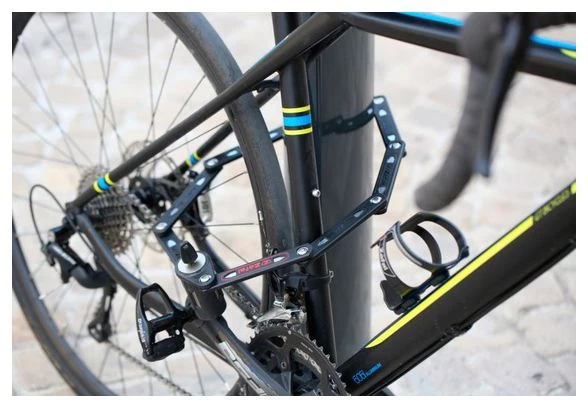 El K-Traz F16L utiliza seguridad U-Locking junto con la facilidad de almacenamiento de un cable de cuerda. Detalles: Material: Placas de acero Longitud: 95cm Peso: 1.35 kg Nivel de seguridad: uso 16/20 en un área de alto riesgo Z Safe: Potente sistema de doble bloqueo Alta resistencia: resistencia a la tracción y a la torsión Compacto: fácil de llevar Montaje rápido 3 llaves incluidas y servicio de «pérdida de llave» (duplicación de llaves en caso de pérdida – Número de serie único)