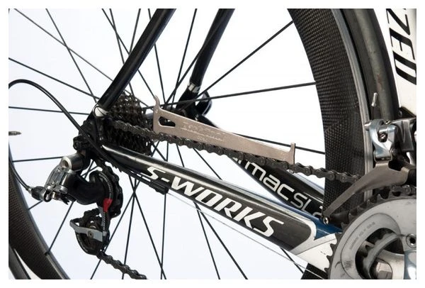 Una cadena desgastada cambia mal y desgasta los piñones a un ritmo acelerado. El CC-3.2 es un indicador de marcha/no marcha diseñado para indicar con precisión cuándo una cadena alcanza el 0,5% y el 0,75%, los puntos en los que la mayoría de los fabricantes de cadenas sugieren su sustitución. El CC-3.2 actualizado es más largo, más preciso y presenta marcas de medición permanentes. Funciona con todas las cadenas de 1/2″ de paso, de 1 a 11 velocidades