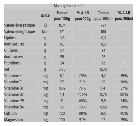 Thanks to its rich protein and carbohydrate formulation enriched with vitamins, Mass Gainer drink brings you: