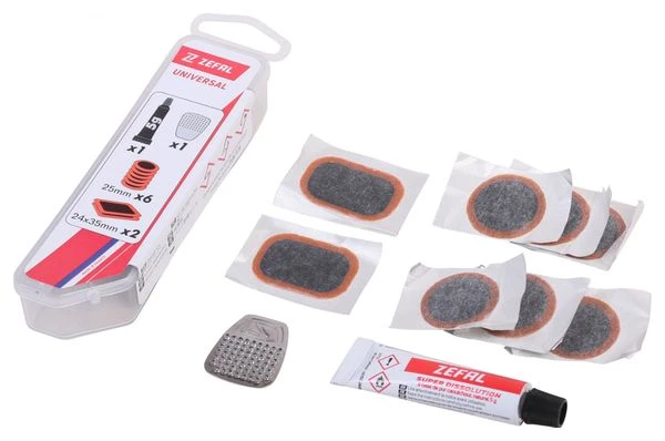 El kit de reparación Zéfal 1132A le ayudará a reparar su bicicleta de forma fácil y segura. Características: Caja compacta: cabe fácilmente en todas partes. Rallador de acero inoxidable: Eficaz en todas las superficies. Referencia: 1132A. Contenido de la caja: 8 parches (6 x Ø 25 mm, 2 x 24 * 35 mm). 1 cemento de caucho 5 g. 1 rallador de acero inoxidable.