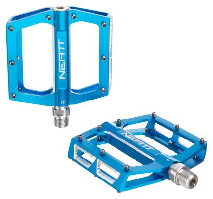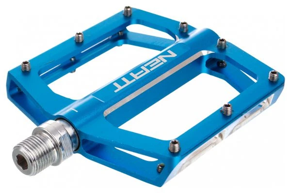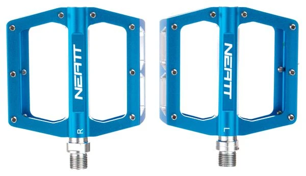 El par de pedales planos Neatt Attack V2 cuentan con un diseño robusto que es eficiente en cualquier tipo de terreno. Detalles: Eje de acero cromado. Cuerpo de aluminio 6061 mecanizado CNC. Anodización azul. 8 pines por lado. Pines reemplazables. Logotipo de Neatt grabado con láser. Dimensiones (largo x ancho x alto): 93 x 98 x 18 mm Peso: 333 g.