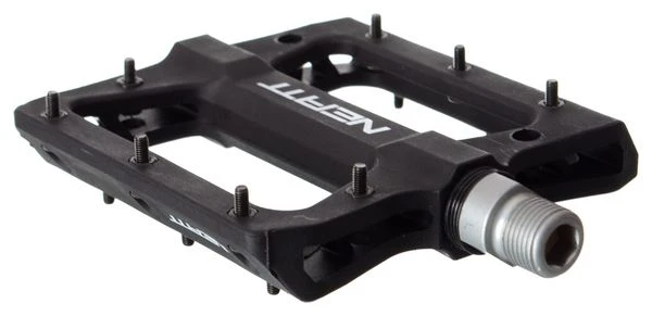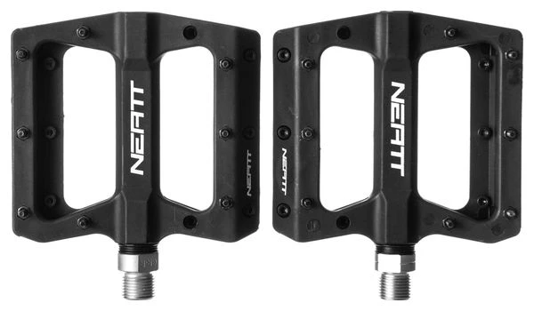 El par de pedales planos Neatt Nylon ofrece un agarre ideal gracias a sus 8 pines metálicos por lado a la vez que aporta la ligereza que buscas.