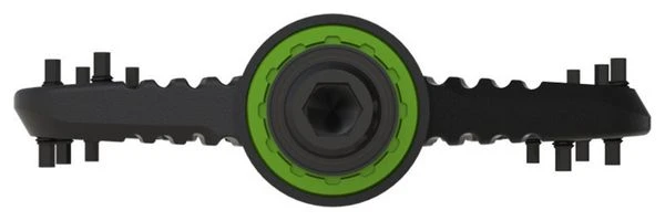 Durabilidad, peso y tamaño líderes en su clase. Diseñado a partir de goma sigilosa hacia abajo. El pedal de aluminio OneUp cuenta con una enorme plataforma de 115 x 105 mm, pero con solo 12 mm de grosor y bordes de ataque de solo 8 mm, no se enganchará en los obstáculos. Cada pedal contiene 4 rodamientos de cartucho completo con doble sellado y sin bujes para una máxima durabilidad y sin juego del eje. El exclusivo anillo de bloqueo de la herramienta del casete hace que el mantenimiento de los rodamientos sea rápido y sencillo. El sistema patentado de retención del eje con extractor de cojinetes incorporado ofrece una capacidad de servicio y protección contra los elementos sin precedentes. Características : 40 pasadores extraíbles hexagonales personalizados de carga trasera para un agarre máximo 4 rodamientos de cartucho sellado por pedal Diseño biselado de borde de ataque ultrafino para desviar cualquier obstáculo Diseño completamente sellado y reparable con extractor de cojinetes incorporado Diseño de plataforma ancha para mayor estabilidad. La forma contorneada proporciona la máxima sensación de conexión. ESPECIFICACIONES No compatible con bielas de carbono SRAM Peso: 355g Tamaño de la plataforma: 115×105 mm # de pines: 10 por lado Material del eje: acero cromado. Altura: 8,3-12 mm Distancia pin a eje: 112 mm Material del cuerpo: Aluminio 6061-T6 Referencia : 1C0380RED