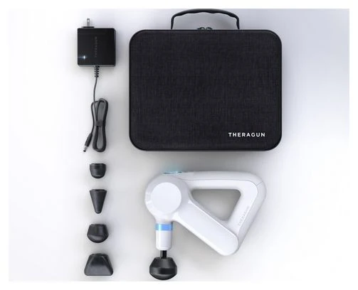 Mod la élite. Eficiente y discreto. Un dispositivo premium. Tratamientos efectivos. Una experiencia de alta gama. Theragun Elite es nuestro mod más silencioso de la gama. La generación Theragun Elite 4 le permite realizar una terapia de percusión destinada a aliviar la tensión muscular. Los estudios científicos han permitido definir la fórmula más efectiva en términos de amplitud de tratamiento y frecuencia de percusión. La mayor parte del dolor es causado por la rigidez muscular y Theragun puede aliviarlo instantáneamente de una manera 100% natural. Theragun Elite será su compañero de bienestar diario. Theragun Elite combina los siguientes 3 principios para tratar su cuerpo: Una amplitud de tratamiento: nuestra terapia de percusión con una amplitud de 16 mm permite tratar los músculos en profundidad, aliviar la tensión, aliviar el dolor y recuperarse más rápido. Frecuencia de percusión: Theragun Elite trata los músculos a una frecuencia de 2400 percusiones por minuto (40 percusiones por segundo), lo que ayuda a cancelar las señales de dolor transmitidas al cerebro, para aliviar todo el dolor al instante. Potencia inigualable: con su motor japonés de alta gama, Theragun Elite puede soportar una presión de hasta 18 kg antes de que su motor se detenga. Los beneficios de Theragun Elite: La terapia de percusión Theragun ayuda en las siguientes situaciones: Alivia la tensión muscular, la rigidez y los nudos. Acelera la recuperación muscular Estimula la circulación sanguínea y el flujo linfático. Alivia los espasmos o calambres musculares Reduce el dolor y la ternura durante el calentamiento. Mejora el rango de movimiento y la flexibilidad del cuerpo. Mejora el rendimiento. Calienta los músculos al instante (30 segundos por grupo muscular) Mejora la coordinación de movimientos y músculos. Ayuda a eliminar los ácidos lácticos. Tiene el efecto de un analgésico, pero de forma 100% natural. Útil para ayudar a aliviar miofascial Pantalla OLED con indicador de nivel de batería digitalizado / medición de fuerza aplicada Conectividad Bluetooth con la aplicación móvil Incluido en la caja: Estuche de viaje Cargador de batería 5 cajas: amortiguador, bola estándar, cuña, pulgar, cono Caracteristicas: Múltiples velocidades Para llevar a cabo el tratamiento más adecuado posible, Theragun Elite le permite ajustar la velocidad entre 2 mediciones científicamente calibradas: (PPM = Percusión por minuto) 2400 PPM: para lograr el tratamiento de percusión más efectivo 1750 PPM: para tratar áreas sensibles Duración de la batería Theragun Elite tiene una batería de iones de litio incorporada que dura 120 minutos cada una. Para mayor comodidad y estética, es posible completar el dispositivo con una base de carga sobria y discreta. Más tranquilo Theragun Elite utiliza un nuevo motor patentado equipado con tecnología QuietForce, lo que hace que el producto sea más silencioso que las generaciones anteriores. Conectividad Bluetooth Theragun Elite ahora está conectado con una aplicación móvil. Captura de forma inteligente según tu práctica. El soporte de carga Para mayor comodidad y estética, es posible completar el dispositivo con una base de carga sobria y discreta. Por lo tanto, Theragun se recarga cuando no está en uso y está listo para usarse en todo momento. (vendido por ment) Producto ergonomía Theragun Elite es muy estudiado y completamente equilibrado. El mango ergonómico ha sido desarrollado para un uso óptimo a nivel profesional y para evitar toda tensión y presión en los antebrazos, muñecas o manos. El diseño triangular del mango del dispositivo permite un agarre óptimo para una mayor comodidad y la posibilidad de un fácil acceso a todas las áreas del cuerpo. ¡Al final, deja que Theragun Elite flote en tus músculos y haga su magia! 5 th rapie tips La gama de consejos de terapia ofrece una variedad de formas y firmezas para poder tratar eficazmente todos los grupos musculares. Los consejos de terapia son adecuados para usar incluso en la piel o a través de la ropa. Las cremas, los aceites de masaje o la transpiración se pueden limpiar fácilmente de las puntas, ya que la espuma es impermeable y tratada con agentes antibacterianos. Los consejos son intercambiables rápidamente para una experiencia de producto más fácil. Garantía del producto Garantía internacional de 2 años en Theragun Elite .