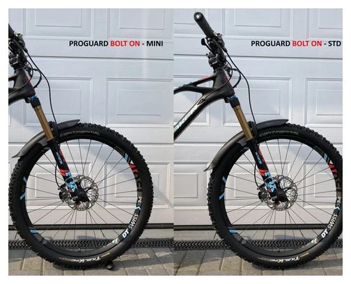 El RRP ProGuard Bolt On es el primer guardabarros grande de montaje directo de su tipo. Ofrece una protección excepcional con la apariencia más suave disponible de fábrica. No hay abrazaderas de manguera o correas de velcro para arruinar las líneas limpias de su bicicleta, ya que está asegurada con tornillos (incluidos). Los soportes de inclinación le permiten ajustar con precisión el ángulo de ajuste del guardabarros, puede inclinar la parte delantera / trasera unos milímetros con 2 soportes (incluidos). Detalles: Longitud: 388 mm. Peso: 104 g (sin tornillos). Compatibilidades: Ruedas: 26 ?/ 27.5? / 29 ?. Neumáticos: hasta 3 ?de ancho. Desplazamiento mínimo de la horquilla: 44 mm. Este guardabarros de «montaje directo» está diseñado para las horquillas que se enumeran a continuación, que tienen orificios roscados en la parte trasera del arco de la horquilla: Para FOX 32, 34, 36, 38 y 49 – Horquillas estándar y Boost (no para FOX 40 en 26 ?o 27.5? sin adaptador). Se adapta a las horquillas MARZOCCHI * (con marco FOX). Se adapta a las horquillas OHLINS *. Se adapta a las horquillas SR SUNTOUR **. * Utilice solo dos pernos exteriores en las horquillas RXF34 . ** Algunas horquillas SR SUNTOUR tienen un orificio recto sin rosca en el centro del arco de la horquilla; puede comprar un «paquete de manguitos» (se vende por separado) para permitir que el ProGuard Bolt On se adapte a estas horquillas .