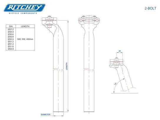 Tija de sillín de aluminio gama Comp 2 tornillos en negro mate