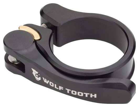 La abrazadera de tija de sillín de liberación rápida Wolf Tooth permite ajustar fácilmente la altura del sillín. Una palanca ergonómica en el lateral de la abrazadera abre y cierra la abrazadera, que se mantiene unida por un perno con un casquillo de bronce que permite al ciclista ajustar el par. Es compatible con los marcos de carbono, acero, aleación y titanio.